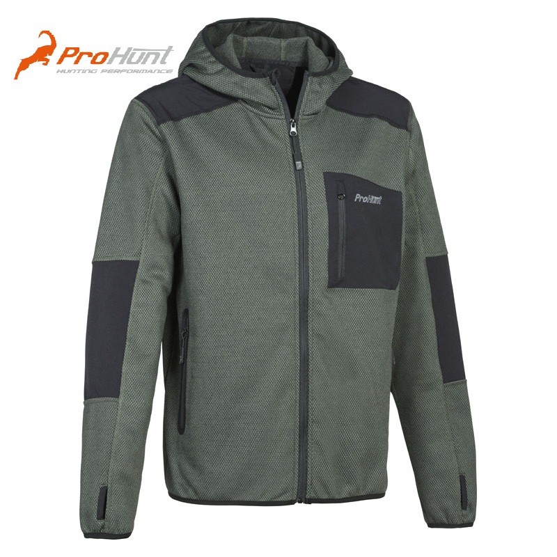Sudadera en camuflaje GHSOTCAMO VERDE CAZA100%poliéster Interior micropolar Bolsillo central, 2 bolsillos laterales con cremallera Capucha con cordón de ajuste. (GC B&B con Norma CE)